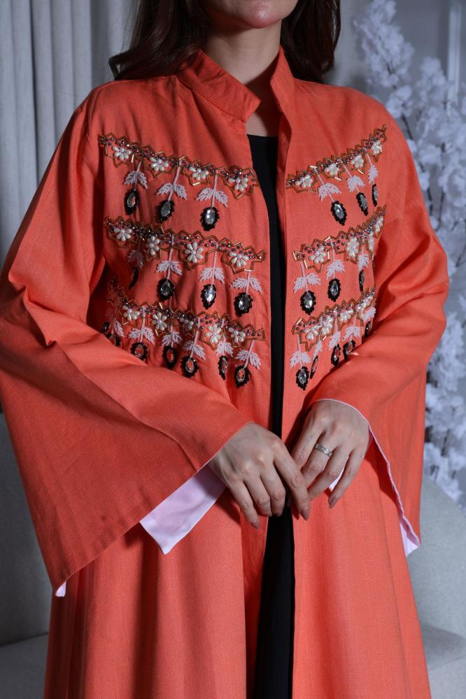 جلابية لينن قطعتين مطرزة في الصدر – أناقة عملية بألوان عصرية