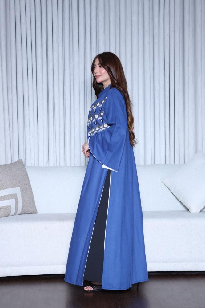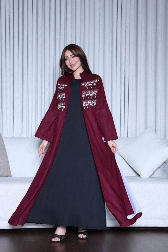 • جلابية مكونة من قطعتين منفصلتين: طبقة داخلية أساسية وطبقة خارجية مطرزة في منطقة الصدر بتطريز يدوي أنيق يبرز جمال التصميم.