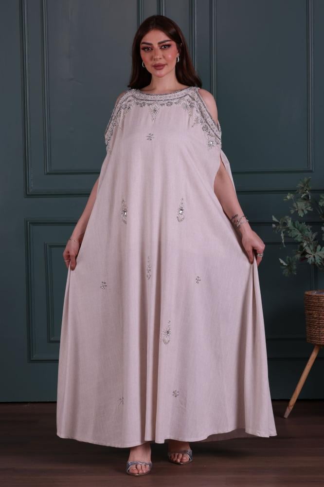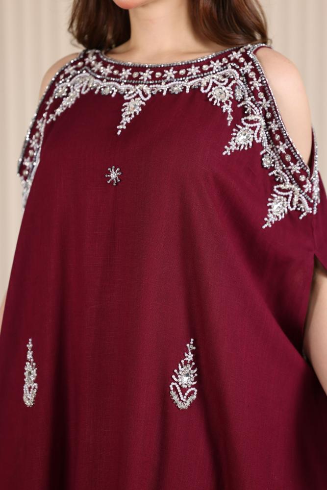 - تفاصيل أنيقة: تصميم ليين، قصة انسيابية وفتحة عصرية في الأكتاف مطرزة بدقة تمنحك لمسة أنثوية جذابة.