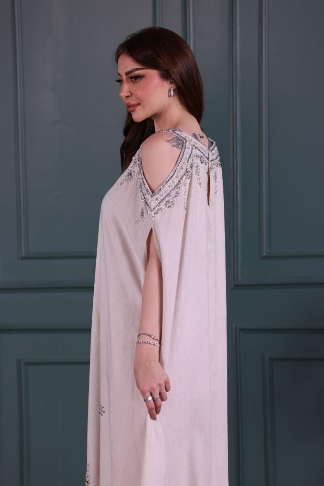 استقبلي العيد وكل مناسباتك المميزة بإطلالة مختلفة مع جلابية استقبال ليين المطرزة، المصممة بعناية لتمنحك إحساس الفخامة مع أسلوب عملي يجمع بين الحداثة واللمسات الشرقية الأصيلة. تأتي هذه الجلابية الرائعة ضمن مجموعة جلابيات العيد من متجر حشمة، وتتوفر بألوان البيج، الأزرق، والعنابي لتناسب جميع الأذواق.