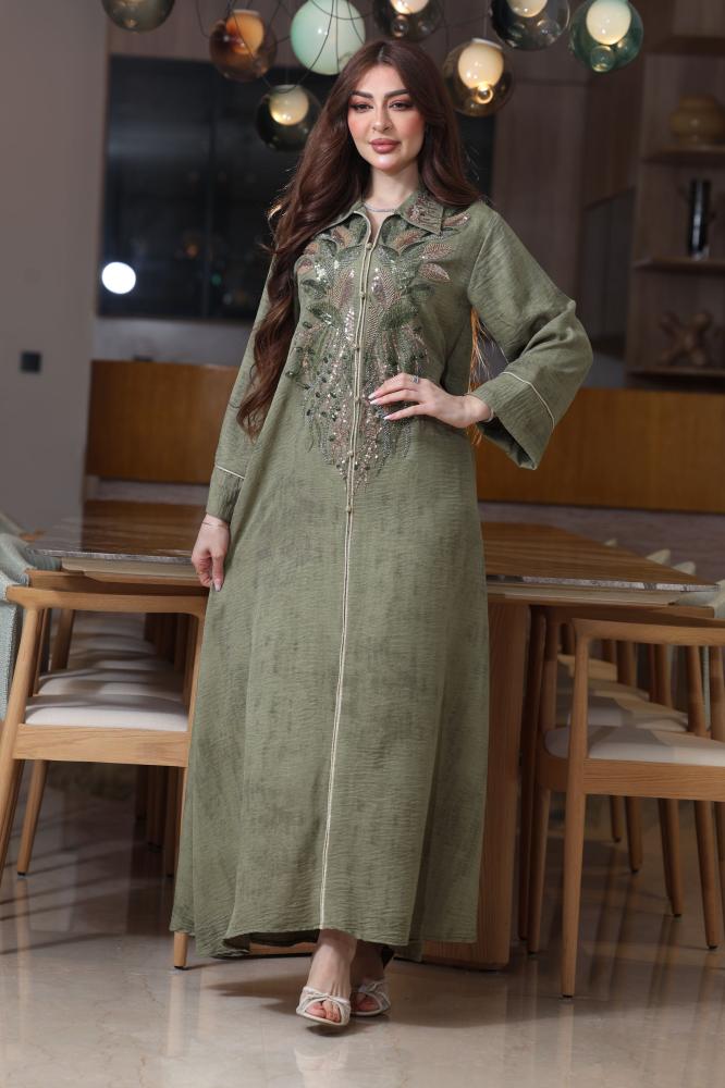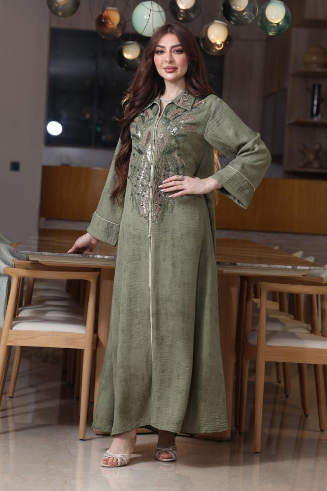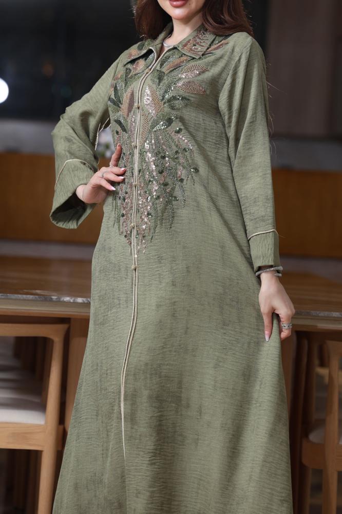 جلابية بكلفة مطرزة في الصدر ورقبة قلاب