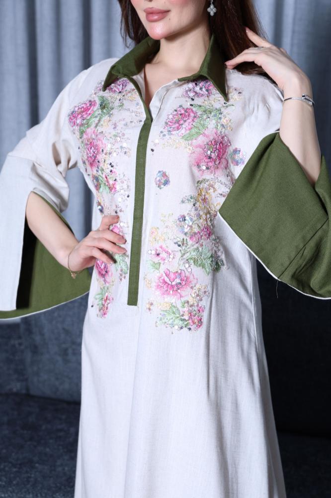 مميزات جلابية بورد لينن قلاب بكلفة مطرزة