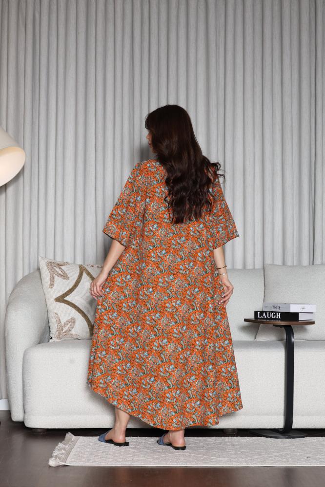 جلابية روز قطن خفيف صيفية ميدي ( رقبة سبعة )