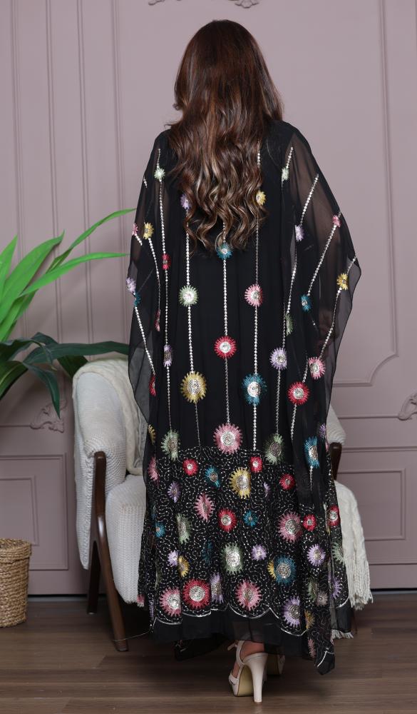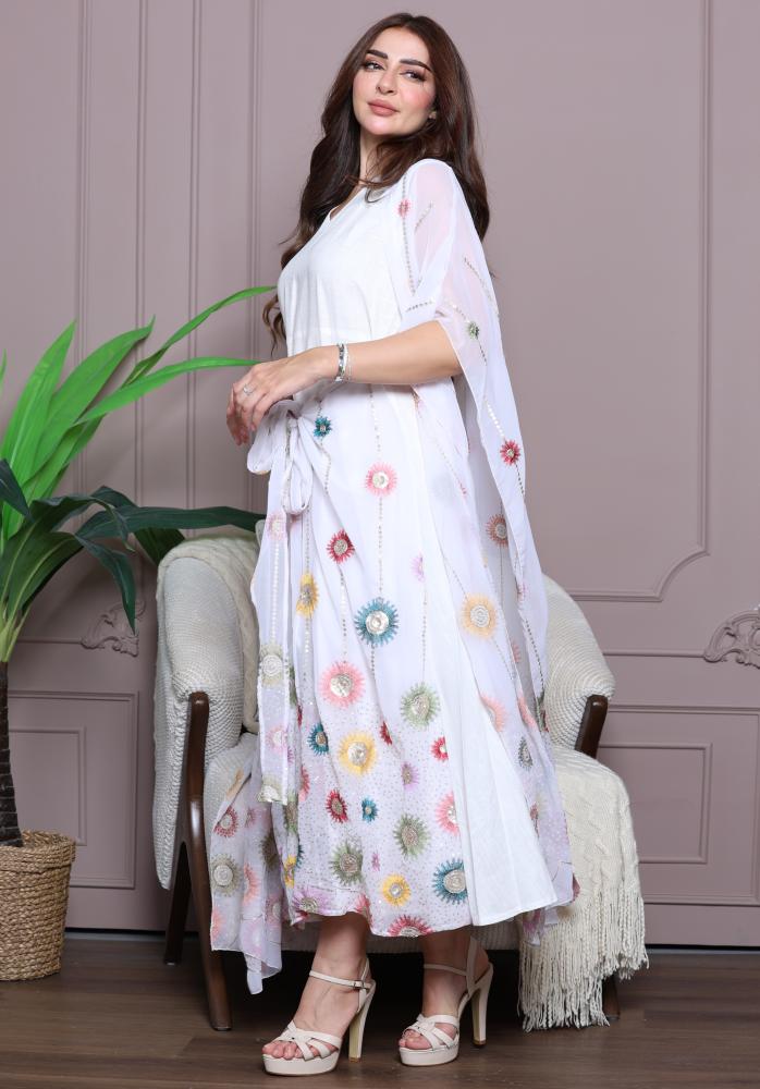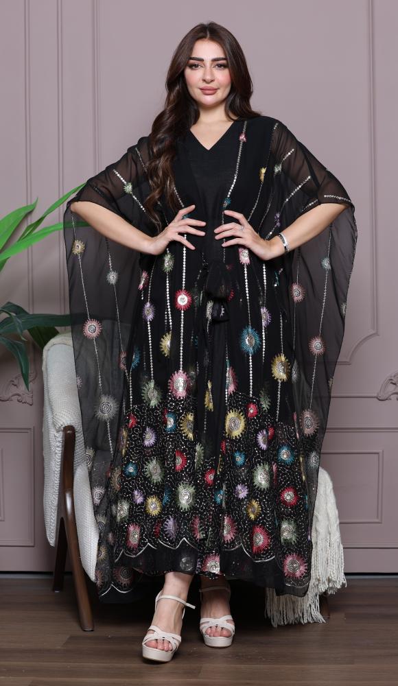 جلابية قطعتين مدمجة بأكمام شيفون مطرز ولينن
