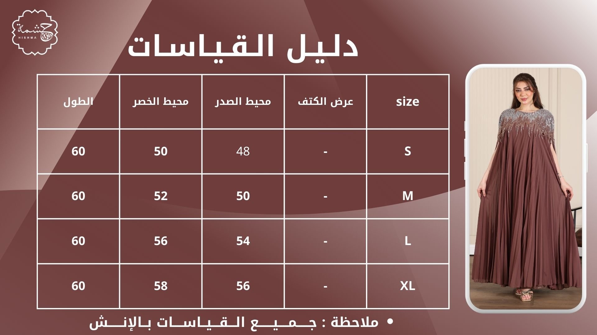 - خامة القماش: جورجيت خفيف وناعم مع قدرة ممتازة على التنفس