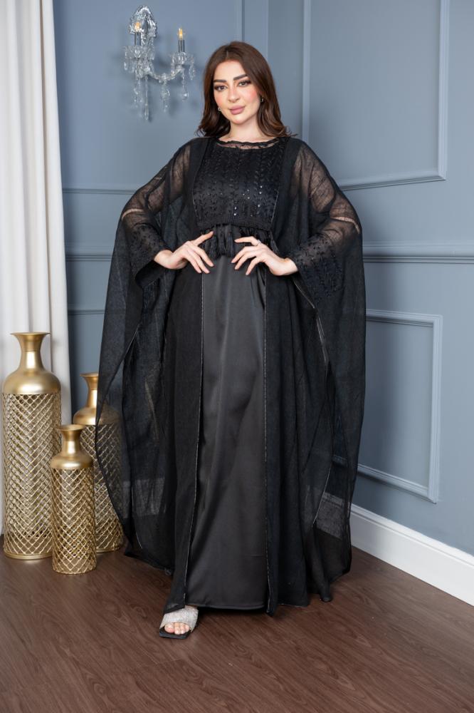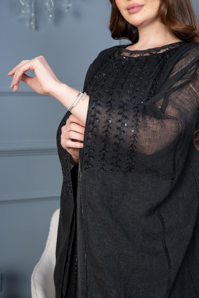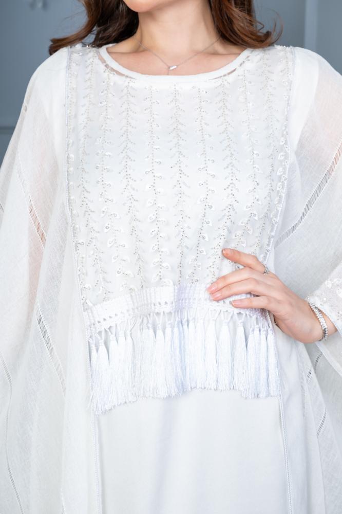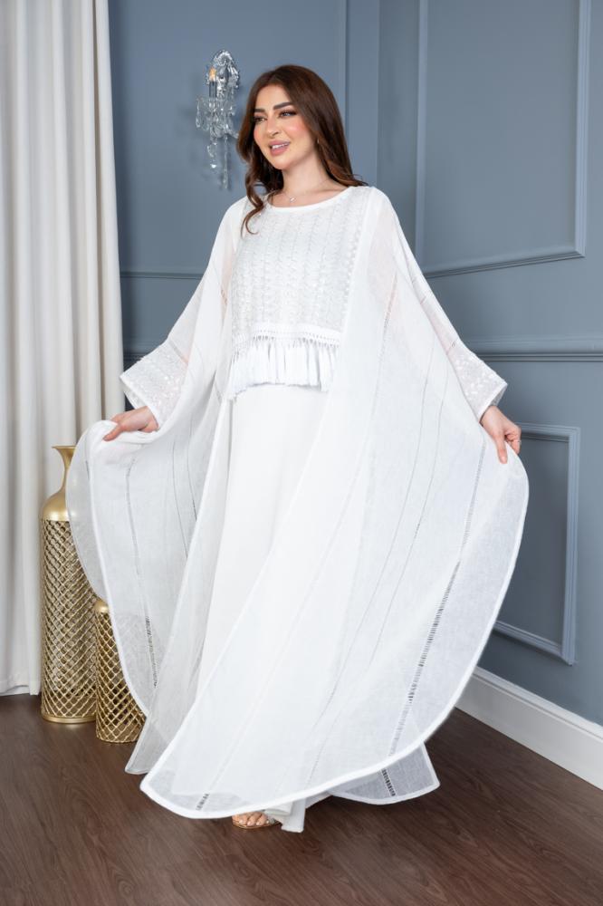 جلابية لينن قطعتين راقي بتطريز سهرة