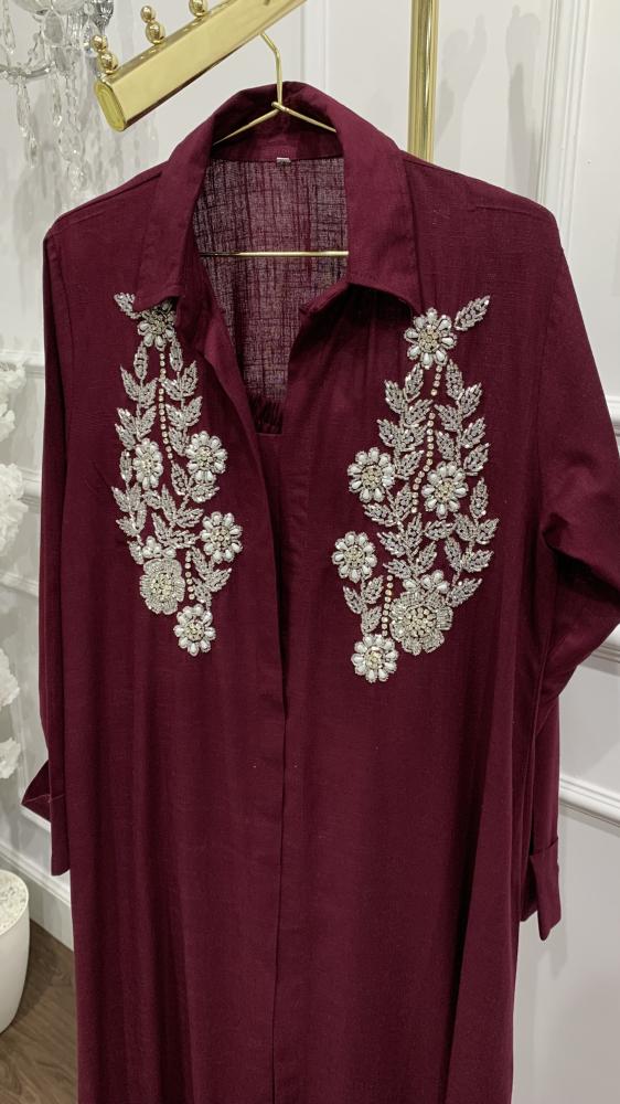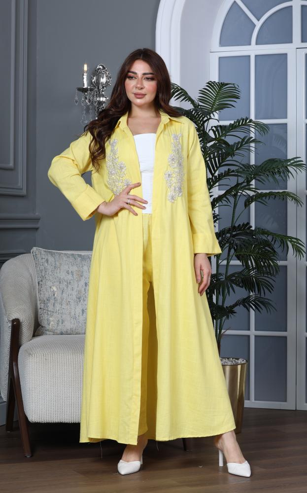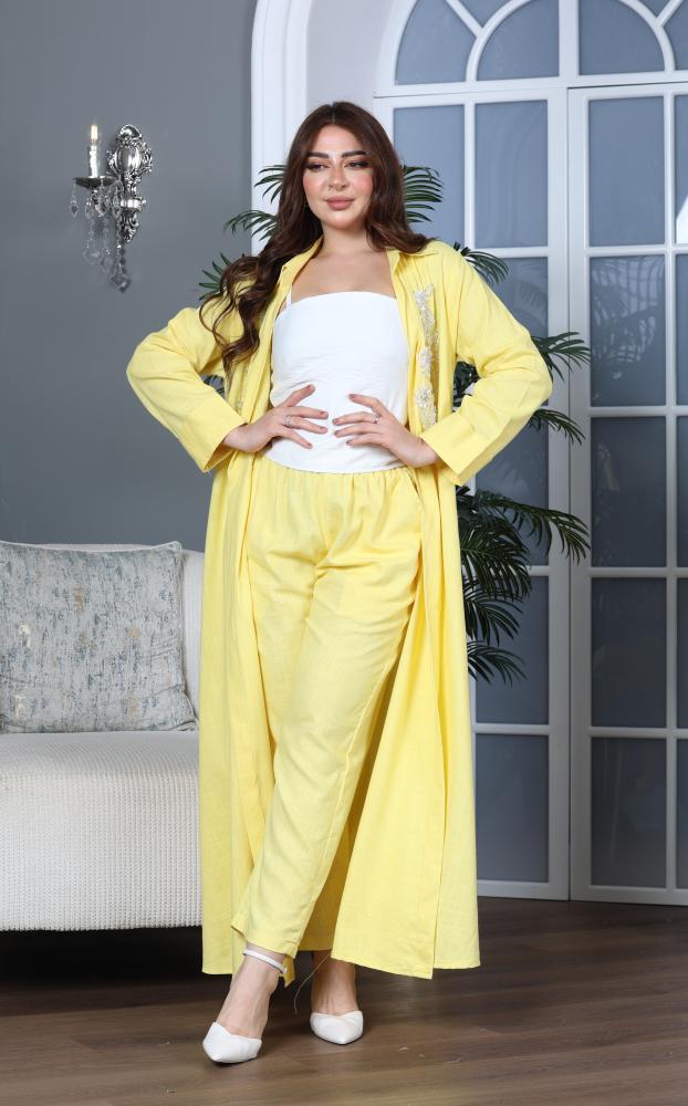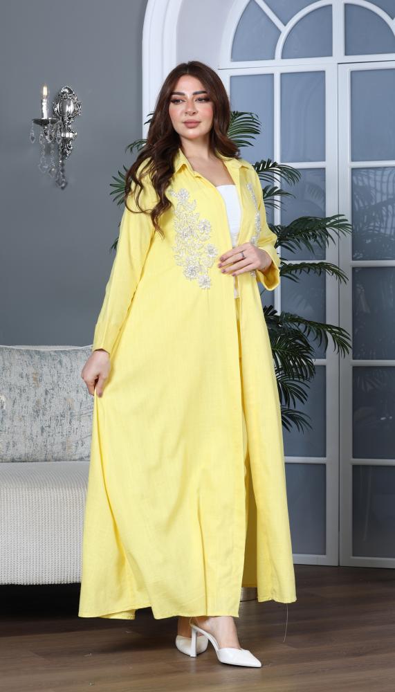 جلابية لينن 3 قطع راقية بتطريز أنيق