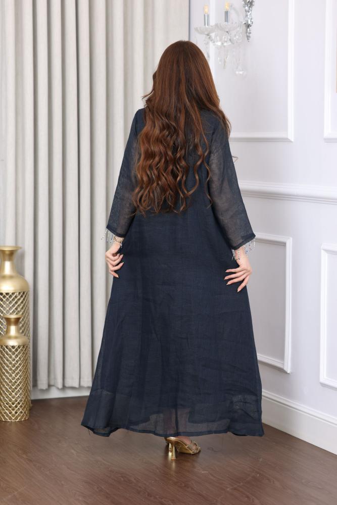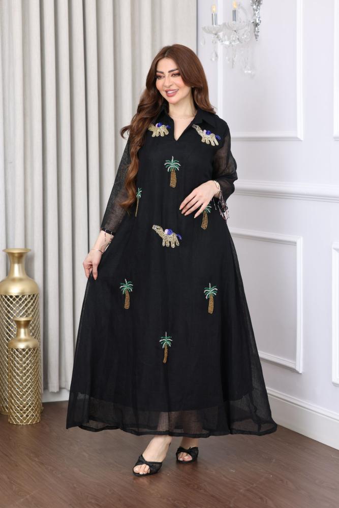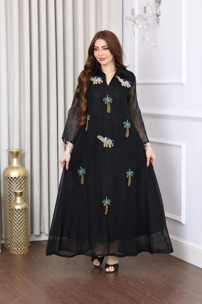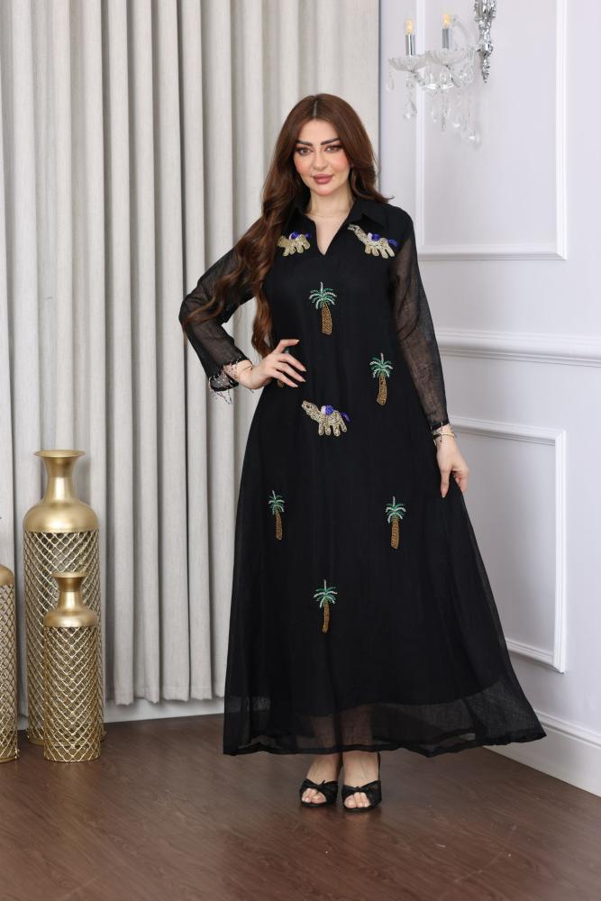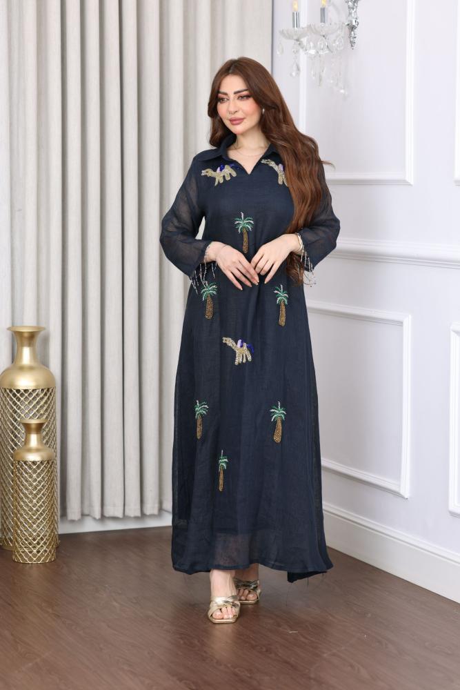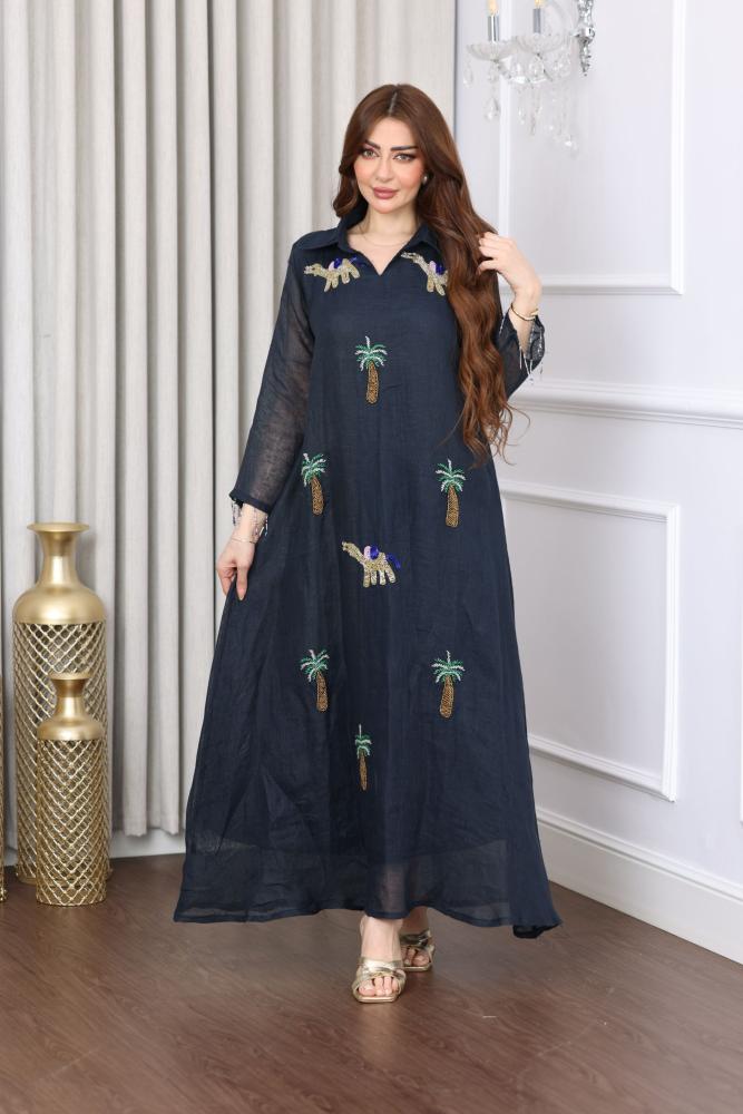 • اسم المنتج: جلابية لينن بتطريز شك نخلة وجمل