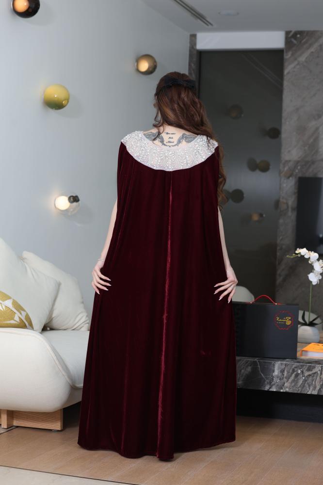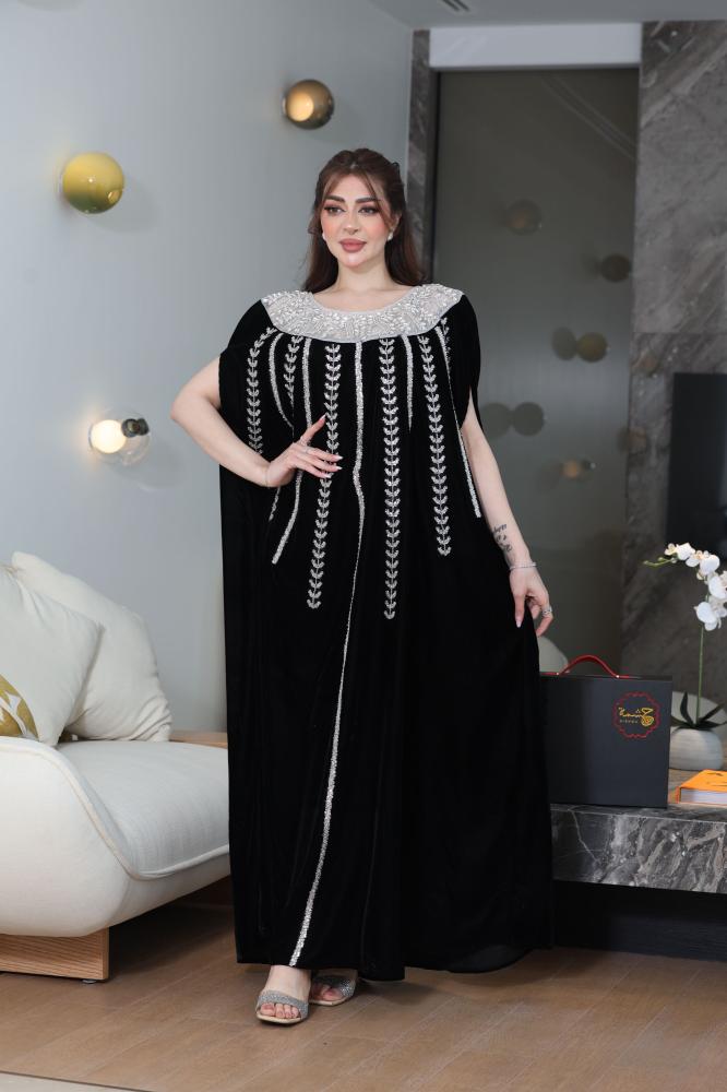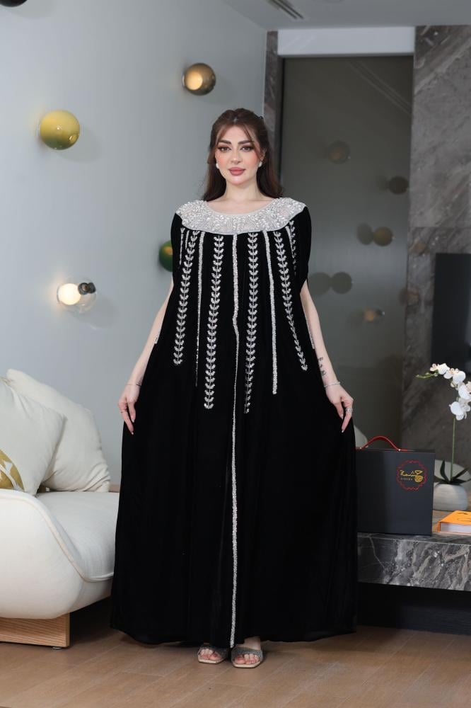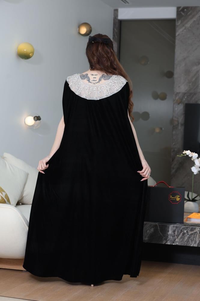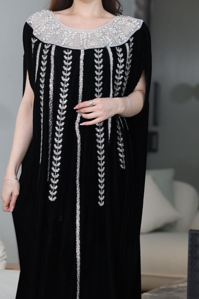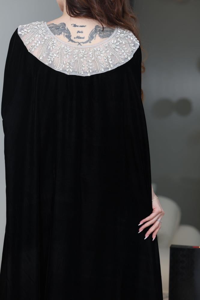 جلابية مخمل فراشة بتطريز كرستالات في الرقبة