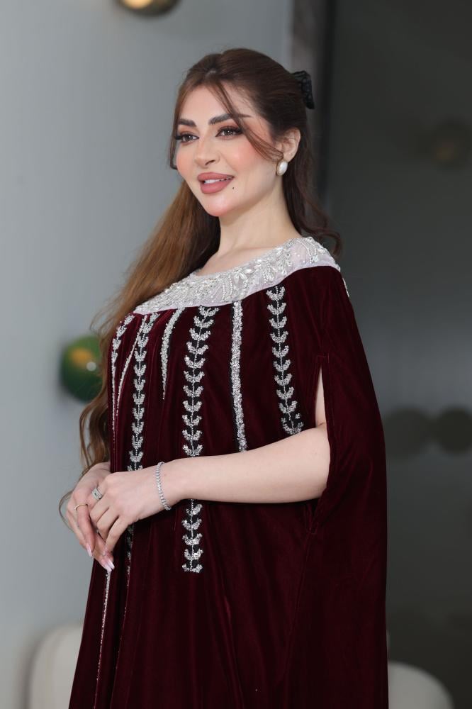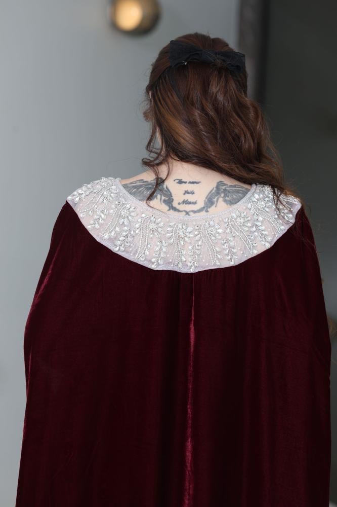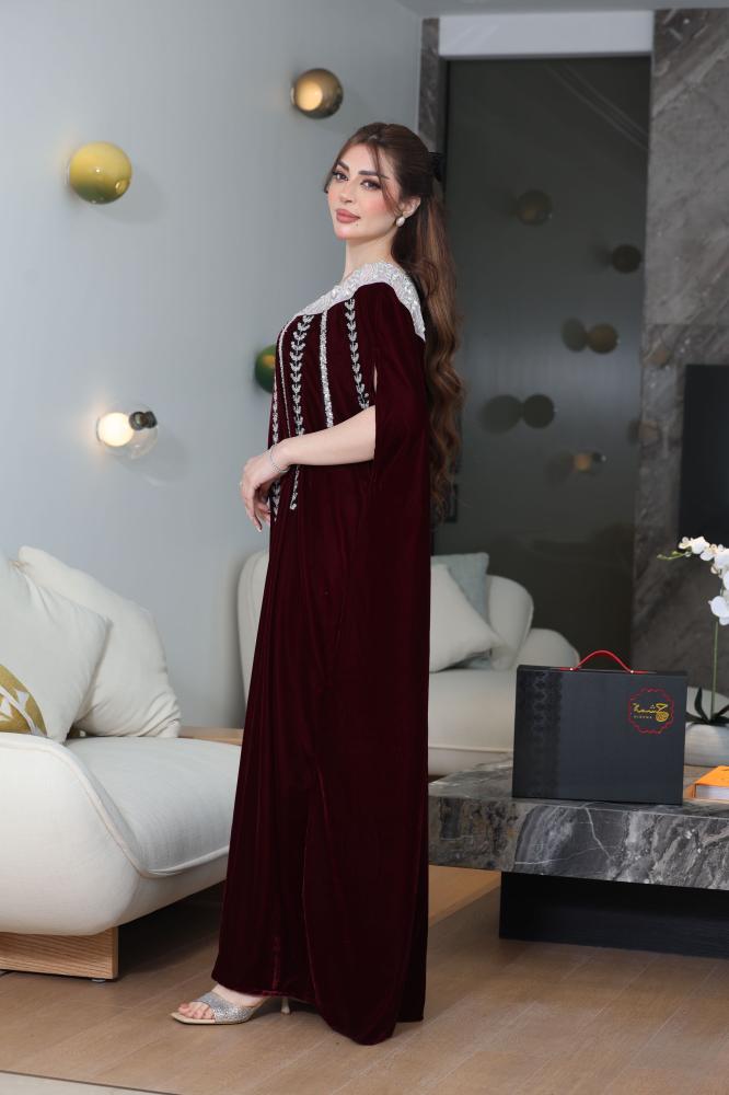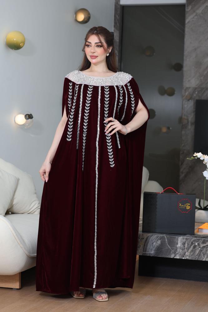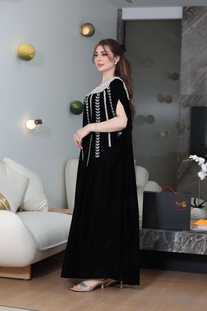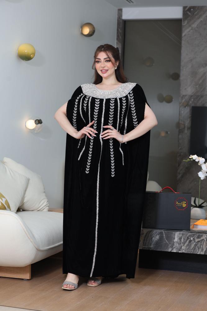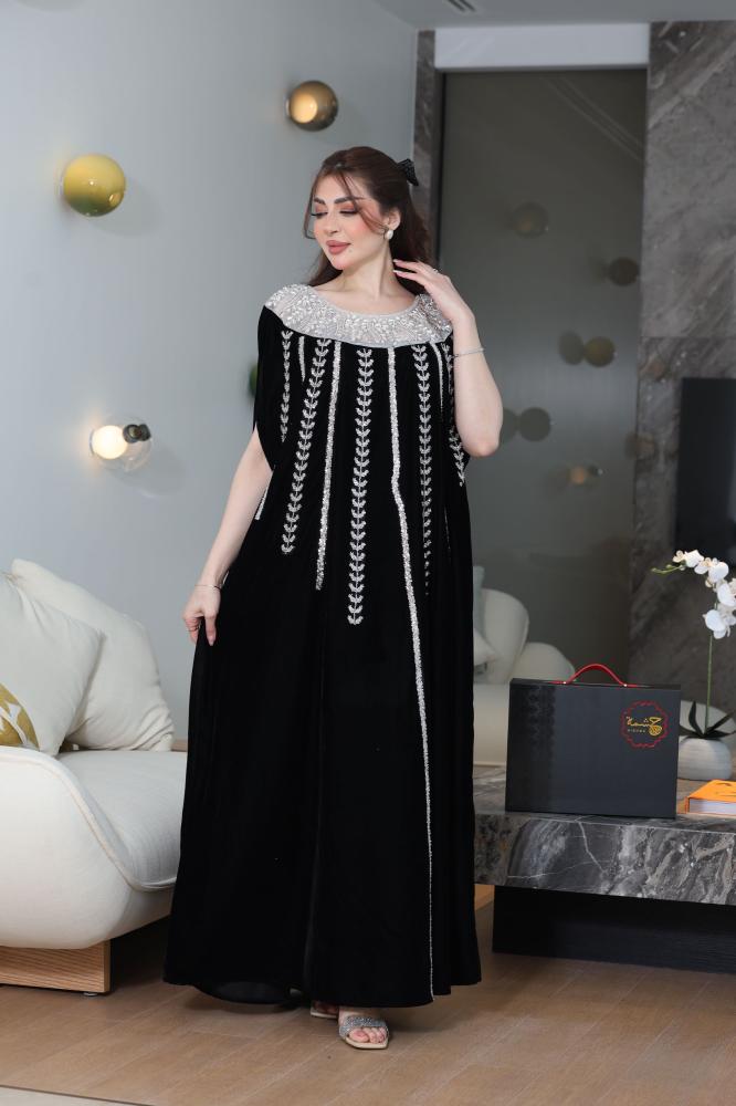 جلابية مخمل فراشة بتطريز كرستالات في الرقبة