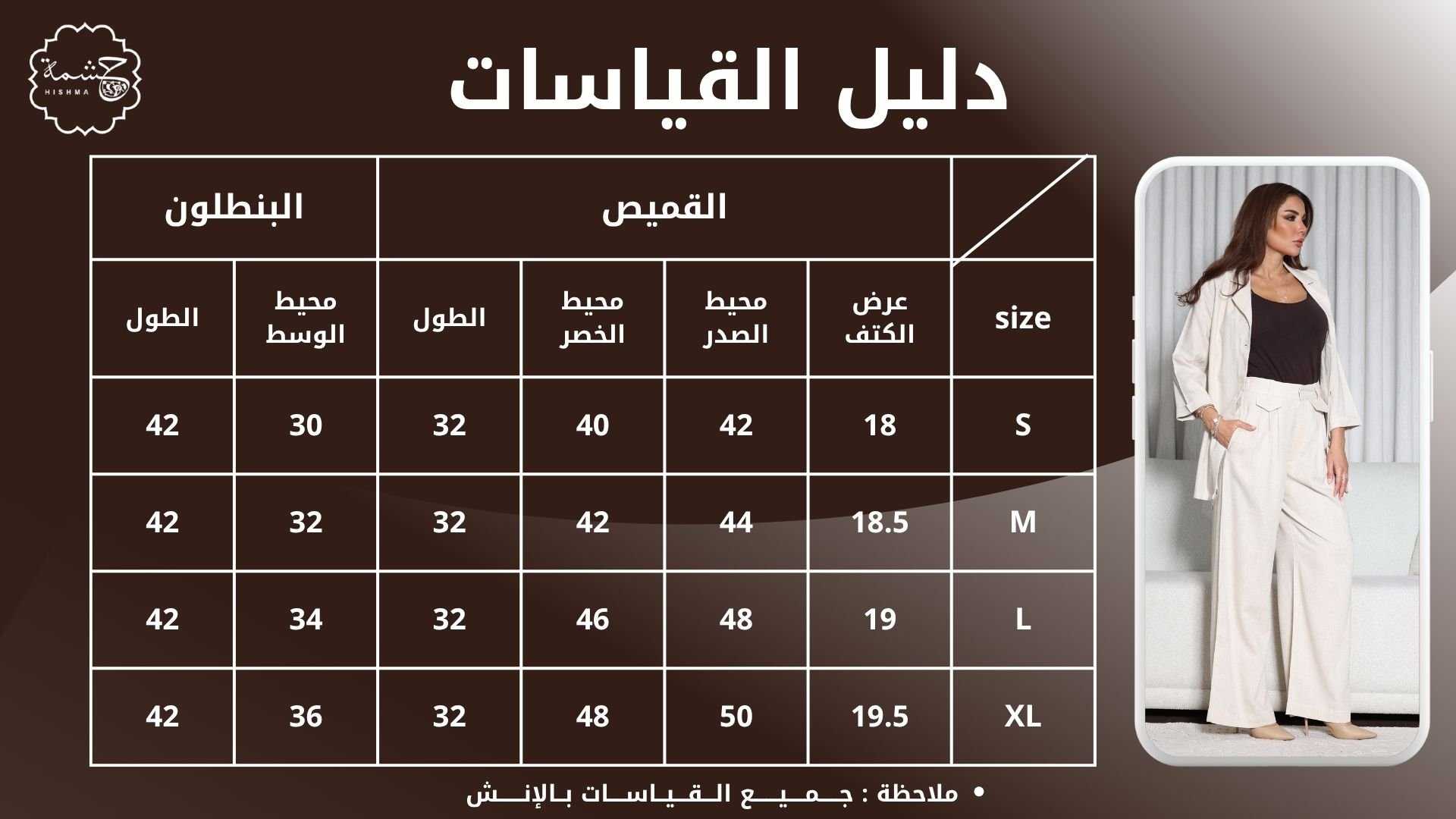 - طقم لينن بكم يتكون الطقم من قميص وبنطلون لسهولة التنسيق معاً
