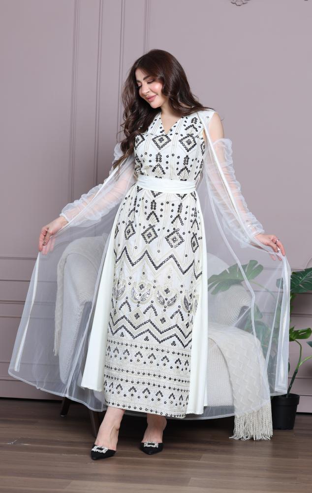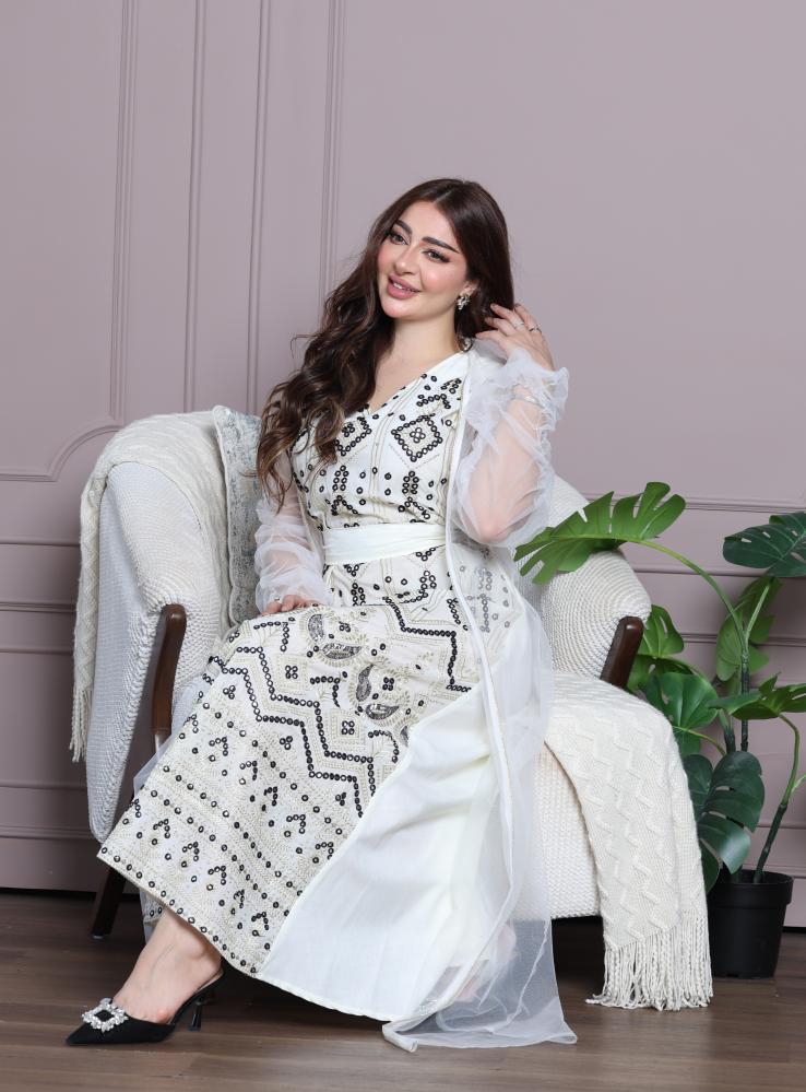 مميزات جلابية لينن بتطريز فاخر وبشت ابيض شيفون