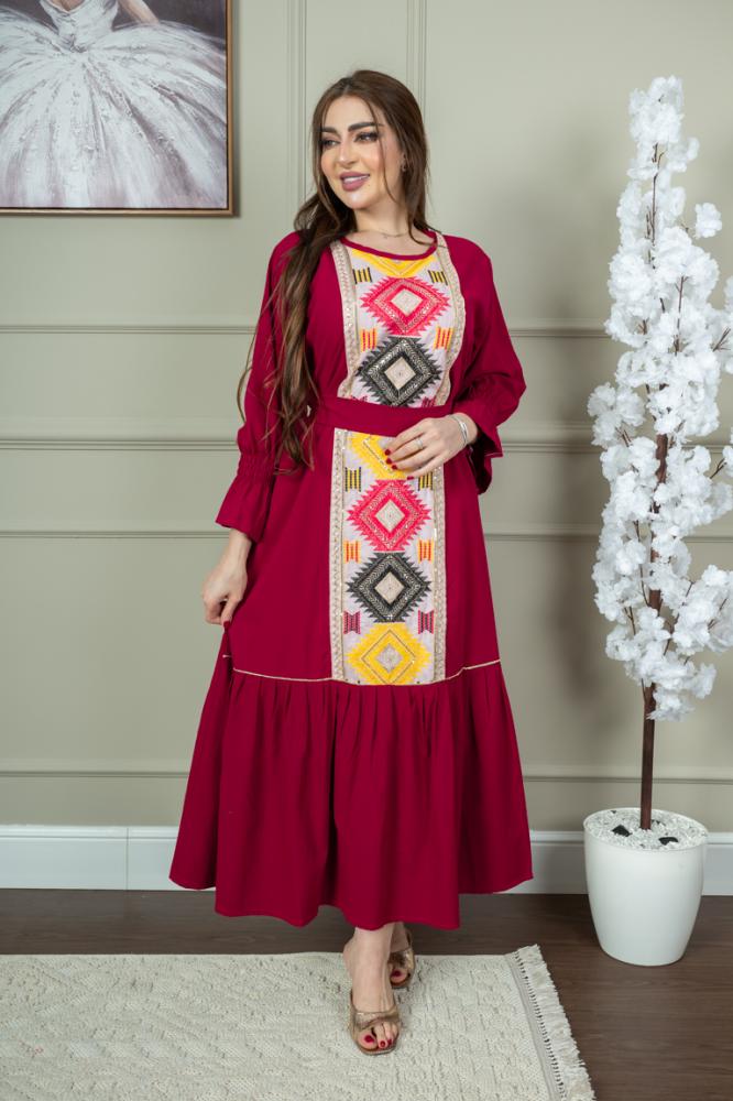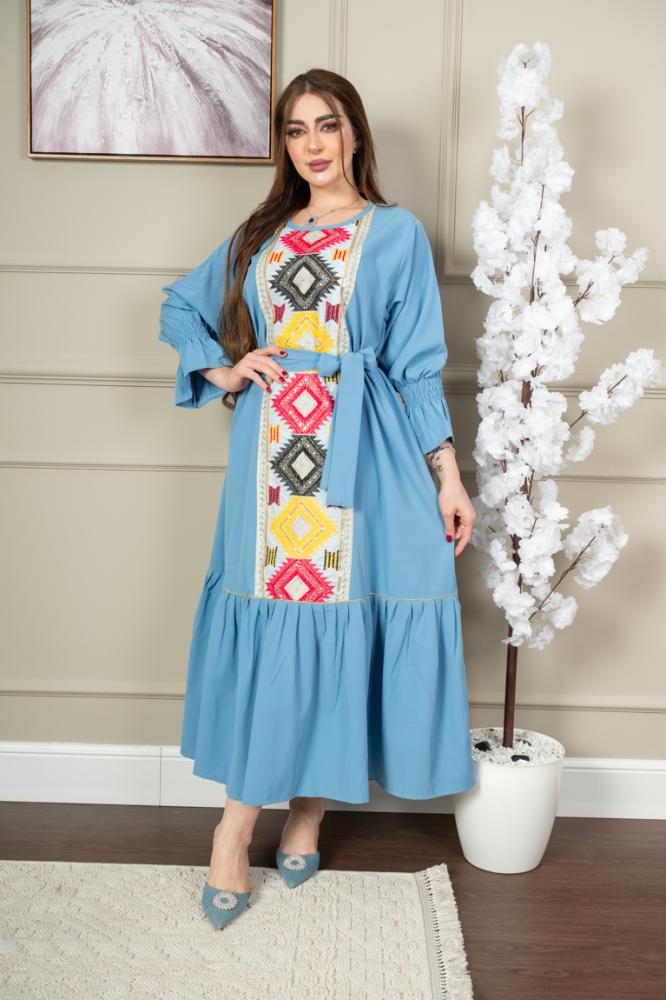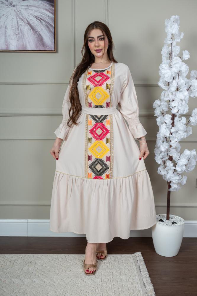 جلابية لينن صيفي خفييف بنقوشات جميلة
