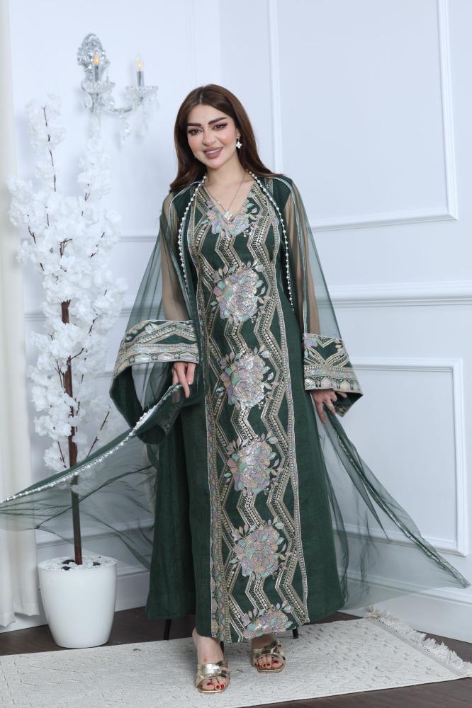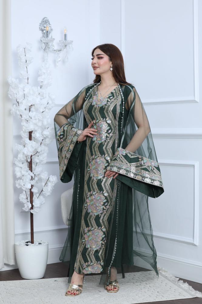 - التطريز الكامل يضيف لمسة فنية دقيقة، مما يجعل الجلابية قطعة فريدة.