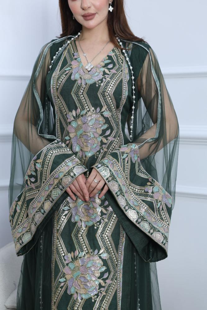 - تصميم الجلابية يتميز بطابع تراثي يعكس الأصالة والفخامة في كل التفاصيل.